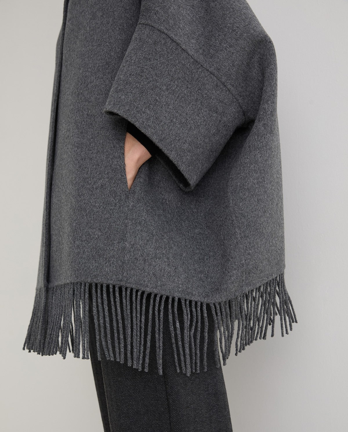 Handmade wool-blend fringed cape - AVAILABLE IN BLACK