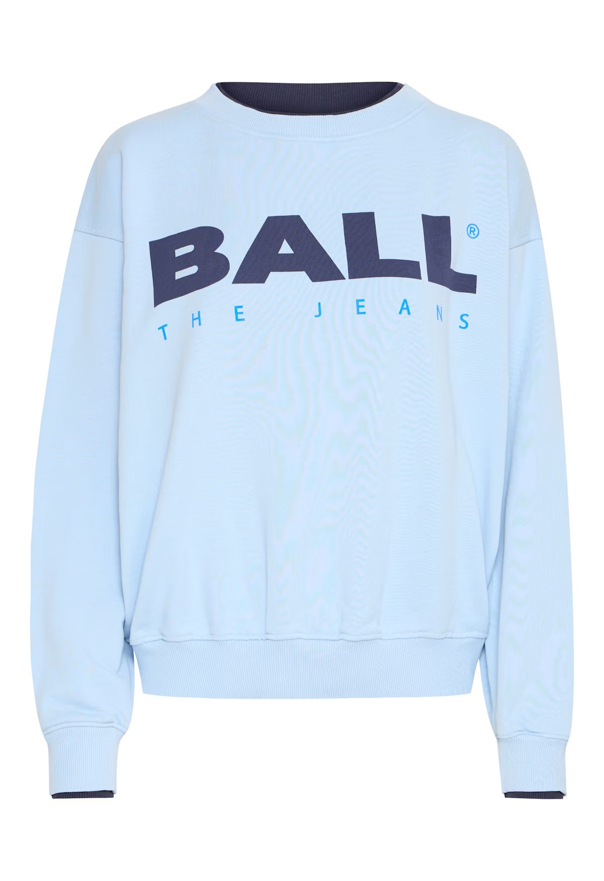 Bold sweatshirt features a straight silhouette with ribbed crew neckline, cuffs, and hem. Contrast layered collar detail and large front logo add statement style.