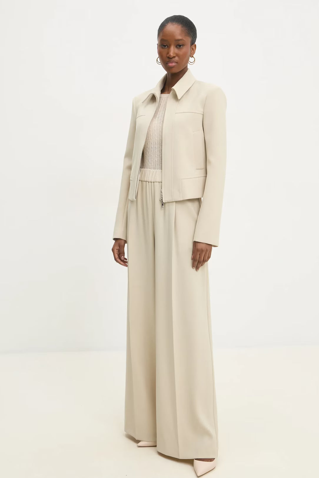 Crafted from premium matte fluid twill, these palazzo pants deliver a refined silhouette with structured fabric that maintains its shape throughout the day. The generous palazzo fit skims effortlessly from hip to hem, offering both comfort and sophistication. Cut to a total hip length of 111 cm with a distinctive fly detail, these trousers are constructed from 100% polyester for durability and easy care. A timeless essential in crisp white.