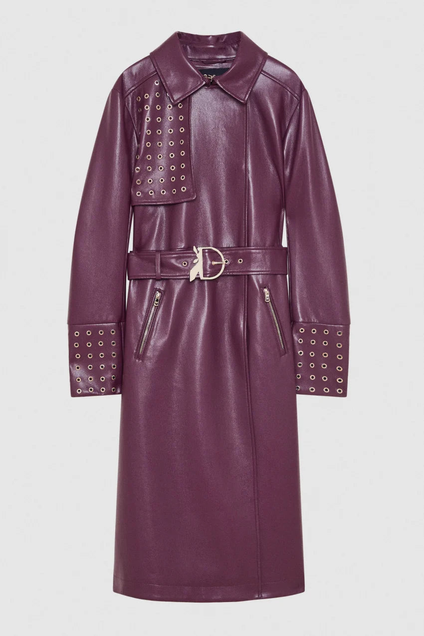 Bold and and full of character, this long coated trench coat by Patrizia Pepe features a zipper at the back and original metal eyelets details for a glam rock twist.
